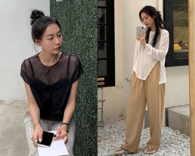 透肤在近期不只流行于韩系穿搭,在日系、欧美风里也掀起一股潮流,透肤相较于直接的露出肌肤来得更有质感、更高级,适当的小心机就能增添整体风格度。网纱或是网状上衣都是透肤服饰的好选择,简单选用黑白色系,看起来不但降温又充满质感。